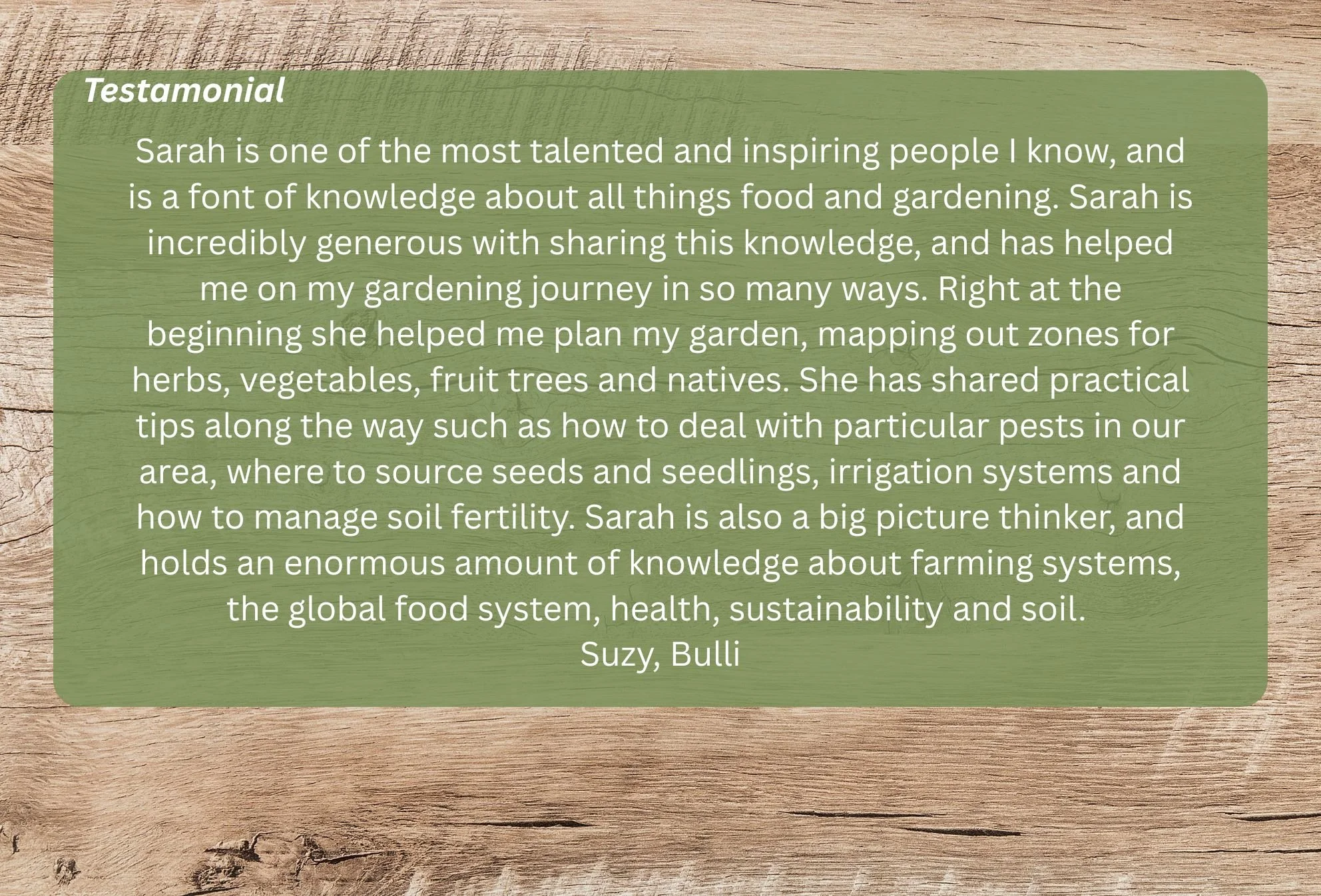 Sarah is taking bookings for walk and talk consultations to help you grow well. She can take you from the ‘where to begin’ overwhelm towards creating edible space that fills the soul as well as the dinner plate.